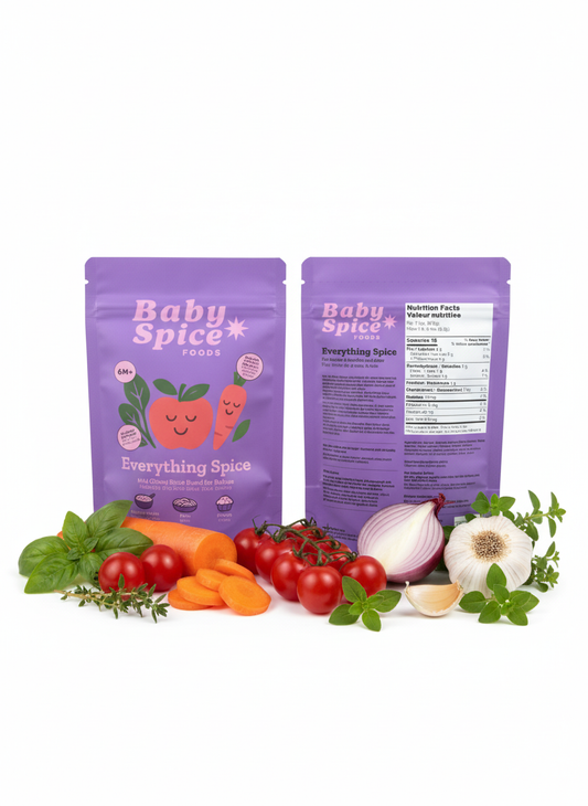 When we say “spice,” we mean flavour, not heat. Baby Spice Foods blends are gentle, baby-safe mixes of fruits, veggies, with mild herbs and spices that bring natural flavour and nutrition to your baby’s meals without added salt or sugar. Just the right sprinkle of taste to help little ones fall in love with real food.